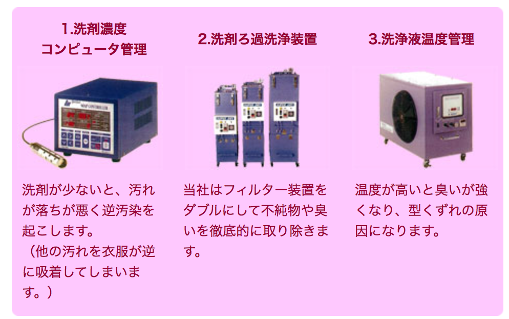 • ●「パーフェクトドライシステム」による徹底した溶剤管理を行っています。